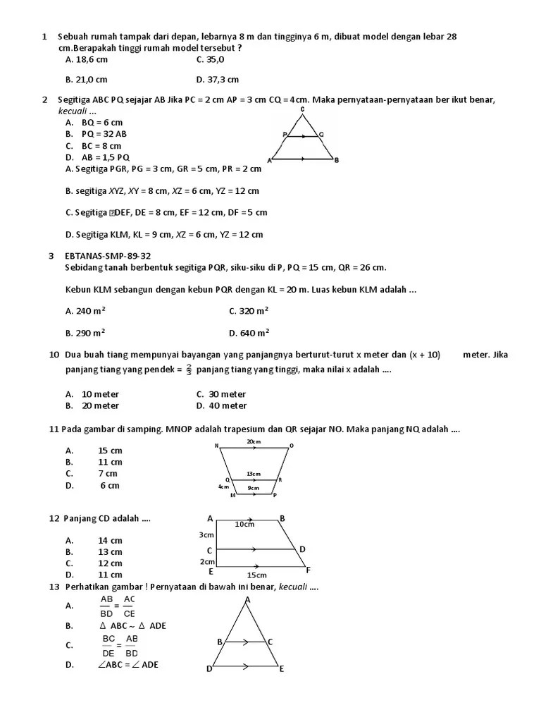Ongruen contoh soal kongruen contoh bangun kongruen kongruen dan kesebangunan. Seperti yang telah kita ketahui bahwa bangun datar sendiri dapat dibagi menjadi . Perhatikan gambar dua buah belah ketupat di bawah ini, apakah kedua berdiri tersebut sanggup dinyatakan kongruen? Dua bangun datar dan segitiga yang kongruen. Semua mimpi kita, dapat menjadi kenyataan, bila kita mempunyai keberanian untuk mengejarnya". Lihat table dan syarat kekongruenan dua segitiga berikut! Di mana kita ketahui bahwa dua bangun datar dikatakan kongruen,. Kumpulan soal kesebangunan dan kekongruenan. Jika dua buah trapesium pada gambar di bawah sebangun, maka nilai x adalah …. Bank soal matematika smp/mts kelas. "semua mimpi kita, dapat m mempunyai kebe bank soal oleh: Contoh soal dan pembahasan tentang fungsi komposisi dan invers . Nah pada kesempatan ini mafia online juga akan membahas contoh soal dan cara penyelesaian kesebangunan yang berbentuk trapesium tetapi tidak sama seperti .